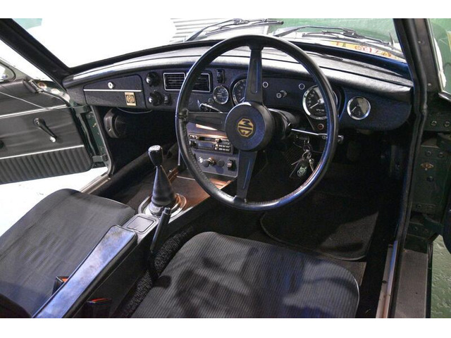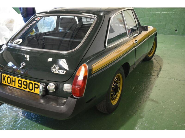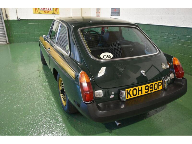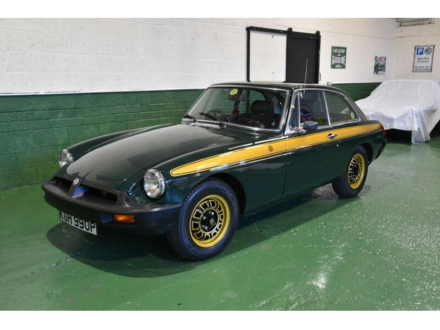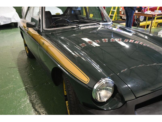 This MG B GT jubilee edition comes in British racing green, with V8 gold wheels and was born on September 5th 1975.