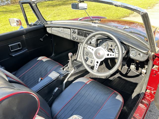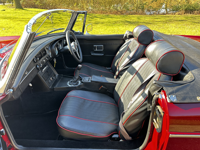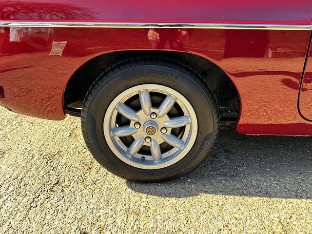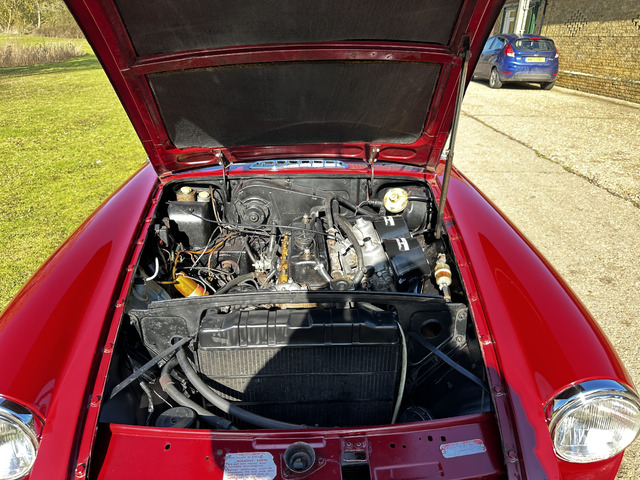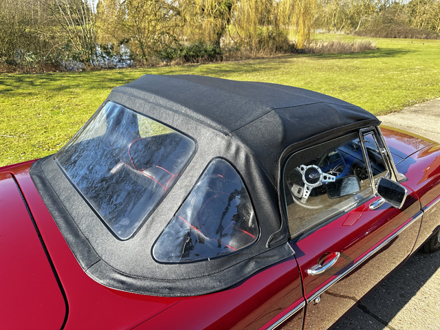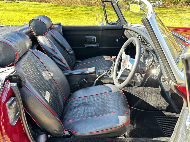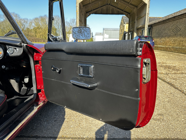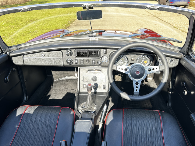 Powered by a lively 1796cc lead free four cylinder engine, it fires up with ease and quickly settles into a smooth running engine with excellent cold and hot oil pressure. The engine is paired with a four speed manual gearbox with Overdrive on 3rd and 4th which has recently been renewed. overdrive. The car’s period charm is enhanced with a set of Minilite alloy wheels which complement the cars period colour exterior. The black vinyl roof is in excellent condition and has a half tonneau for when the roof is down.