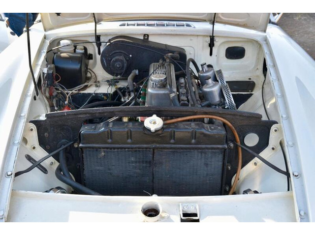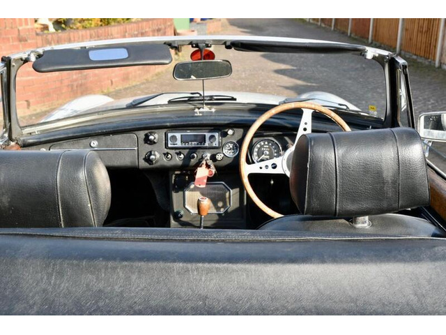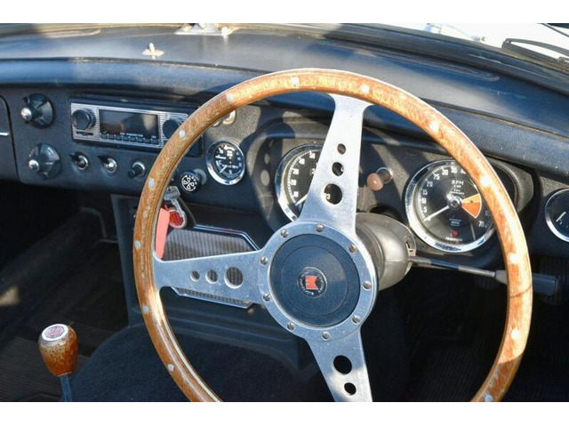 It comes with a moto-lita steering wheel, chrome spoke wheels, mohair roof, wood capped door cards and wood hand pulls.