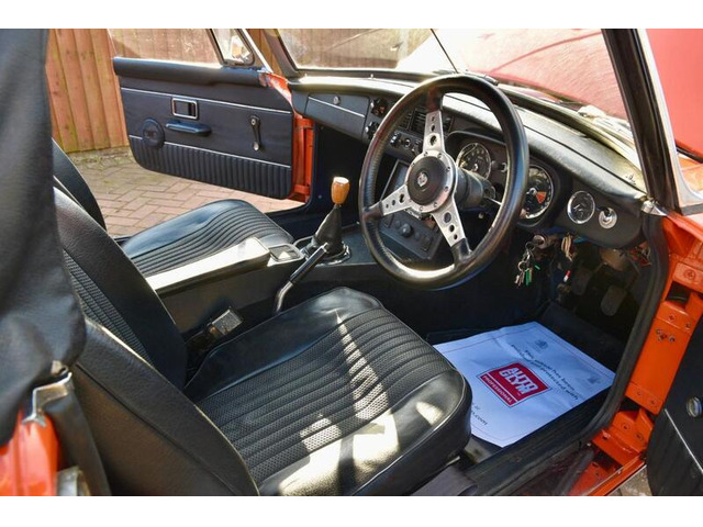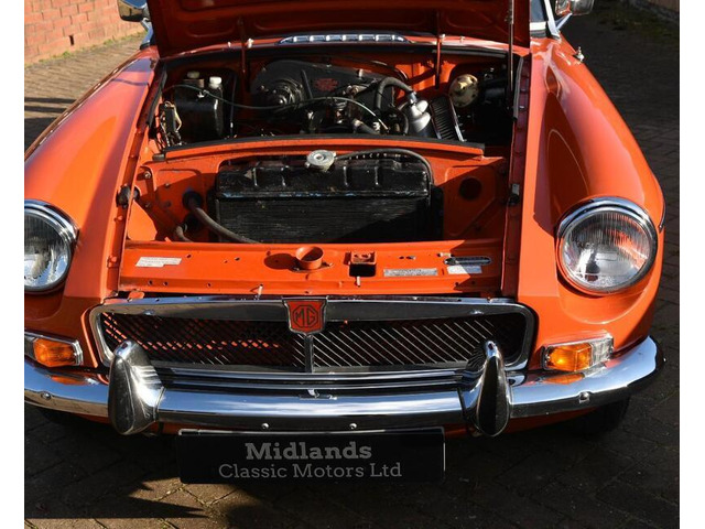 This lovely mgb roadster was registered on 13th June 1973 and is finished in blaze orange It has been in the same ownership for the last thirty years and has had a comprehensive restoration some time ago with a photo album to back this up . It has a stainless steel exhaust and manifold recent front shock absorbers a new 12 volt battery to replace the 2 old 6 volts ones. It has also had a new clutch fitted and has a British motor heritage certificate. The car will be sold with a 12 month mot and come fully serviced and fully tuned.